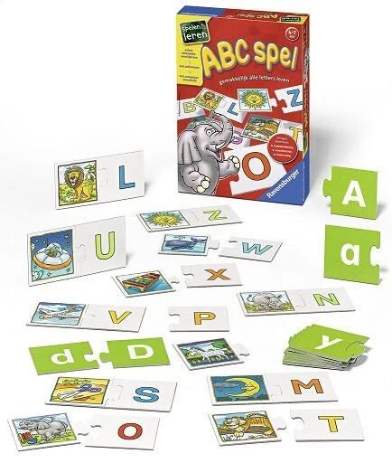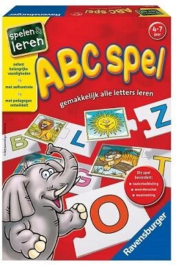 Met het ABC spel van Ravensburger leren kinderen van 4 tot 7 jaar spelenderwijs letters kennen en herkennen. De Z van Zon, de L van Leeuw en de M van Maan etc. Als de puzzelstukken passen, is de oplossing juist.