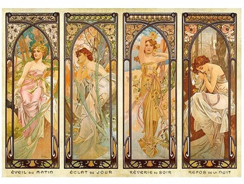 Deze puzzel naar het werk Times of Day van Alphonse Mucha telt 1000 puzzelstukken.