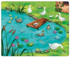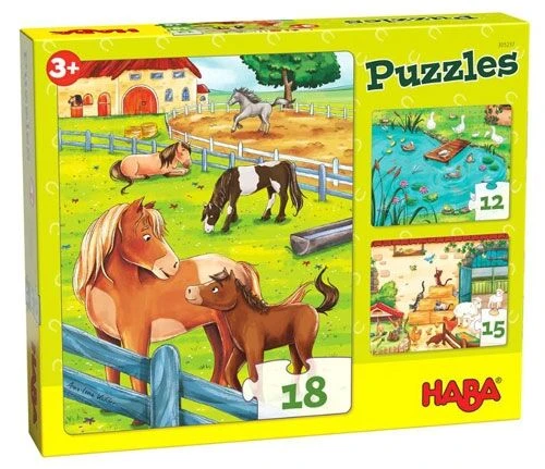 Boerderijdieren bevat 3 mooie puzzels met boerderijtaferelen. Eén puzzel bestaat uit 12 puzzelstukken, een tweede heeft 15 stukken en een derde bevat 18 puzzelstukken.