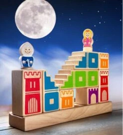 Camelot JR van Smart Games is een stevig houten denkspel voor jonge kinderen. Met de blokken probeer je een weg te bouwen zodat de ridder tot bij de prinses kan komen zonder te springen.