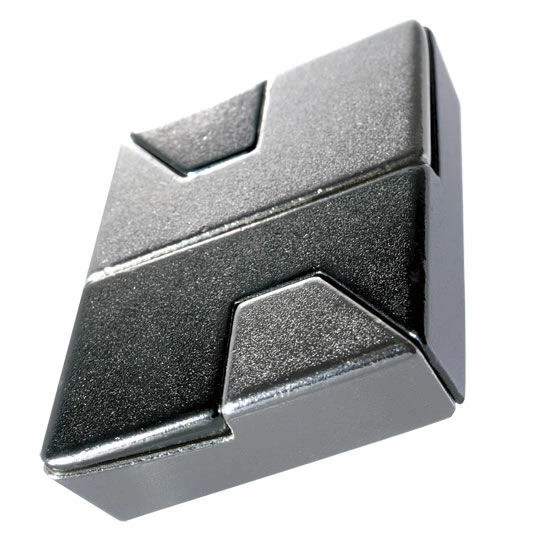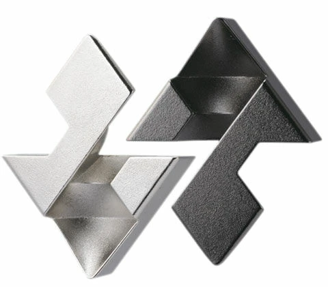 Deze diamant bestaat uit twee delen die zich heel eenvoudig uit elkaar laten halen. Ze weer samenvoegen is echter een heel andere kwestie. Een eenvoudige maar elegante puzzel om steeds binnen handbereik te houden.