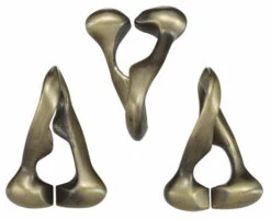 Een puzzel met een complex en organisch design, waarbij elk onderdeel in elkaar grijpt met de twee andere. Behalve de afgebeelde configuratie zijn er nog tal van andere combinaties mogelijk, zodat u maximaal kunt genieten van deze puzzel. Ontworpen door designer Kyoo Wong uit Hongkong.