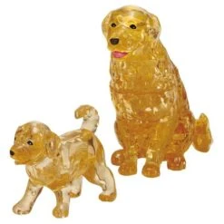 Dit is een 3D puzzel van een Golden Retriever met zijn pup. De puzzel bestaat uit 44 kunststof stukjes. Door zijn transparante stukjes oogt de puzzel oogt als kristal.