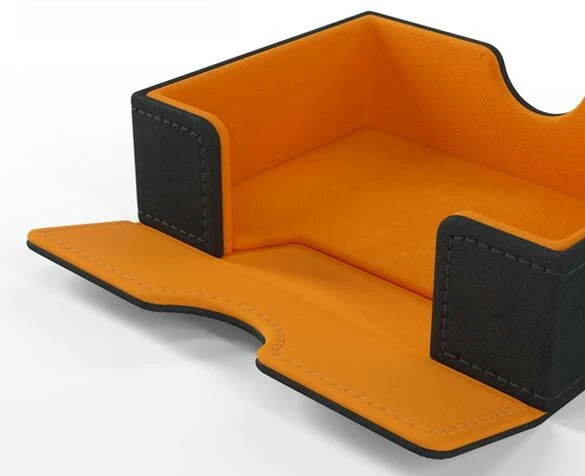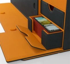 De Deckbox Card’s Lair 400+ Convertible Black/Orange is een zwarte stevige box, gemaakt van Nexofyber materiaal. De binnenkant van de box heeft een oranje voering van microvezel. Krachtige magneten houden de box veilig gesloten.