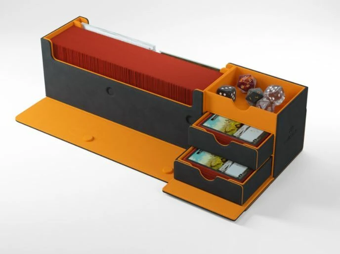Dit is een Gamegenic Deckbox voor 400 double-sleeved standard-sized cards of 540 standaard formaat kaarten met enkele sleeves. Daarnaast bevat de deckbox volledig uithaalbare schuifjes met een magnetische sluiting. In deze schuifjes en in het bovenste compartiment kunnen spelaccessoires bewaard worden zoals tokens en dobbelstenen. Naast de ruimte voor de kaarten, is ook plaats voorzien voor de bewaring van oversized cards of voor scorebloks/notitieboekjes.