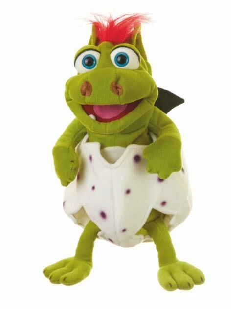 De mond van deze handpop kan bespeeld worden. De handpop is +/- 36 cm groot.