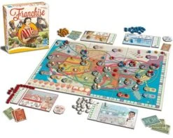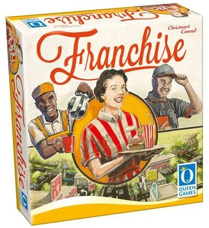 In the game Franchise, players are entrepreneurs, bringing to life the American Dream in the U.S.A. during the 1960s. Starting with a small, newly founded business (such as car rental, a diner, or a coffee shop), they expand into other towns and cities. By adding branches to their businesses, they increase their income and influence. The player with the greatest influence across the game’s regions wins.