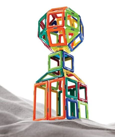 GeoSmart is magnetisch constructiespeelgoed. Ieder onderdeel is een geometrische figuur. Er zijn vierkanten, rechthoeken, gelijkzijdige en gelijkbenige driehoeken, ruiten en trapeziums. Met deze vormen kan je zowat alles maken wat je maar wilt.