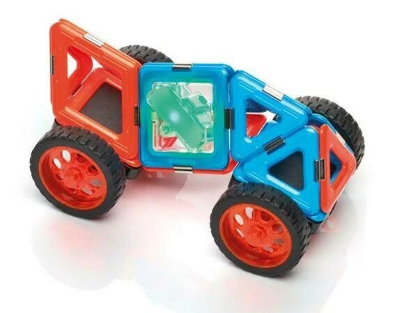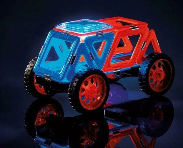 GeoSmart Nightcruiser bevat 21 bouwonderdelen. Je kan er zelf een cool voertuig mee bouwen. Licht aan en gaan!