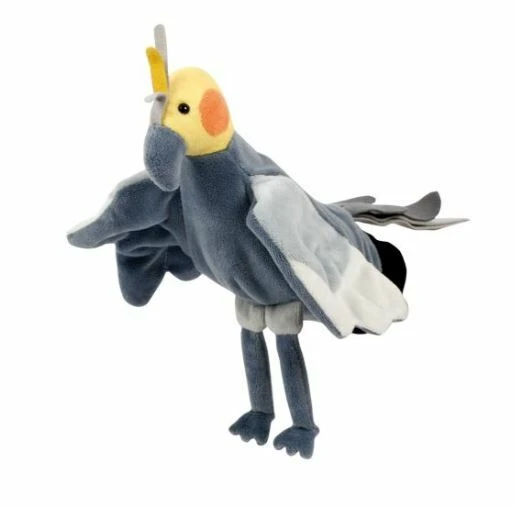 Deze pluche handpop van een valkparkiet is ongeveer 22 cm groot. Je schuift je hand in de pop en het rollenspel kan beginnen.