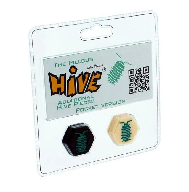 Hive pocket: Pillbug bevat een zwarte en een witte tegel met een pissebed. De pissebed mag een aangrenzende steen verplaatsen of mag zelf één stapje bewegen.