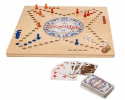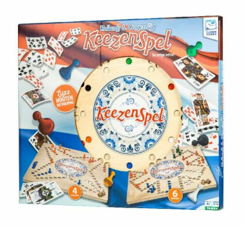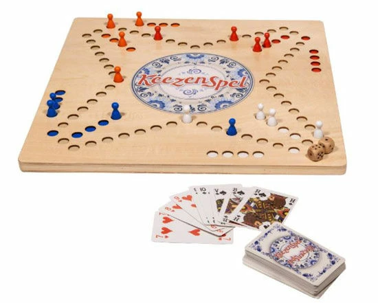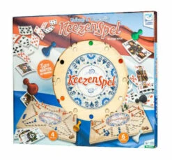 Dit is een houten Keezen bordspel met een dubbelzijdig speelbord van 40 x 40 cm. De ene kant van het bord is geschikt voor 4 spelers, de andere kant voor 6 spelers.