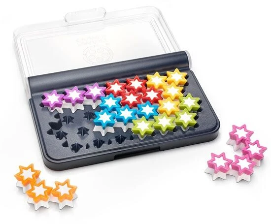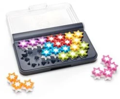 IQ-Stars van het merk Smart games bestaat uit 120 verschillende opdrachten, gaande van makkelijk tot razend moeilijk. Het spel is geschikt voor 6 jaar en ouder.