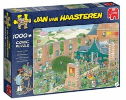 Op deze kunstmarkt ontdek je de meest buitengewone dingen! Jan van Haasteren heeft heel wat humor in de prent gestopt. Terwijl je aan het puzzelen bent, zal je de grappige dingen één voor één ontdekken.