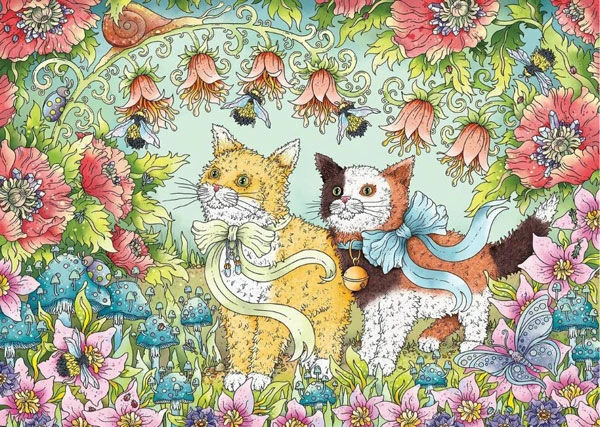 Kattenvriendschap bevat een speciale getekende afbeelding van twee katten die omringd zijn door bloemen en paddenstoelen. Het is een legpuzzel van 1000 puzzelstukken.