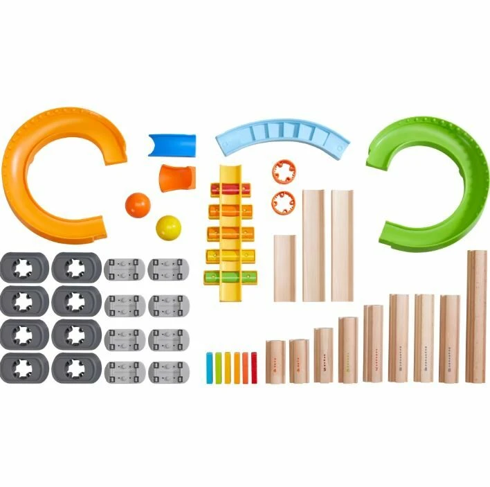 De elementen uit deze knikkerbaan kunnen gecombineerd worden met alle andere knikkerbanen van Kullerbü.