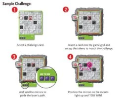Laser Maze is een denkspel voor kinderen vanaf 6 jaar. De bedoeling van het spel is om de laserstralen op de raketten te richten zodat ze veilig kunnen terugkeren naar de Aarde.