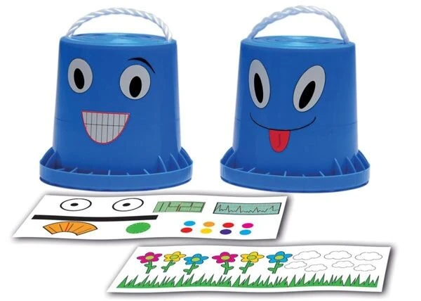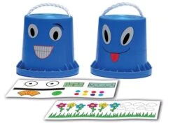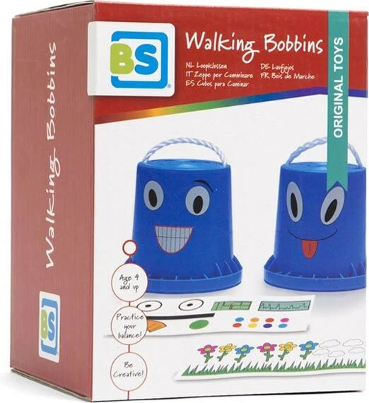 Dit zijn vrolijke loopklossen. Met de meegeleverde stickers kun je de klossen veranderen in een robot, een bloementuin of in een leuk gezicht.