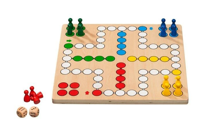 Dit is het klassieke mens-erger-je-niet spel in een houten uitvoering (multiplex).
