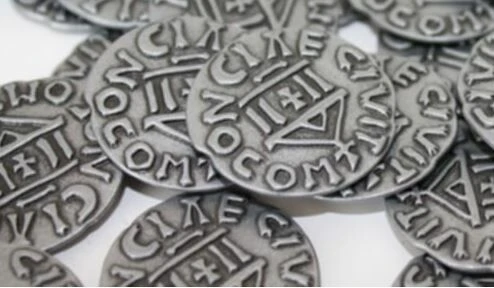 Dit is een set met 50 luxe metalen munten die je kan gebruiken in de verschillende spellen van de Westelijk Koninkrijk trilogie: