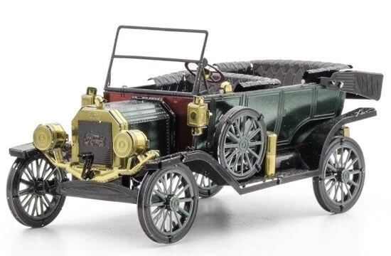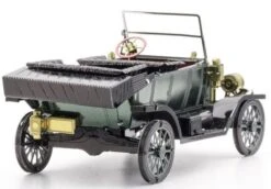 Dit is een 3d-model van een Ford 1910 Model T. Het bouwpakketje bestaat uit 2 metalen sheets waar je de onderdelen kan uithalen. Je hebt een tangetje nodig om de stukken in elkaar te zetten.