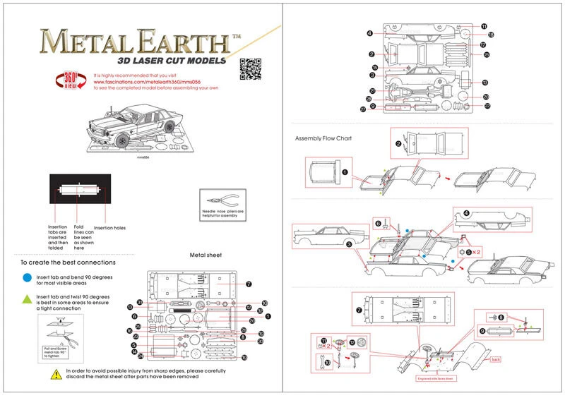 Deze 3d puzzel in metaal van de Ford Mustang uit 1965 meet 9 x 2,5 x 3,2 cm. Deze metal earth puzzel bestaat uit 2 sheets. Een fijne tang is nodig om de Mustang te assembleren.