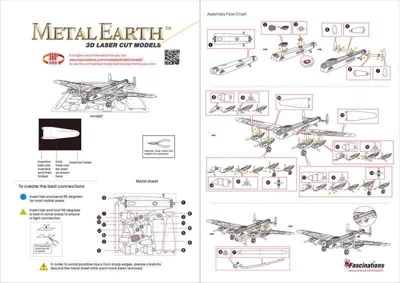 Deze metalen 3d puzzel van een Avro Lancaster Bomber is 13.2 x 8.8 x 2.6 cm groot. Deze metal earth puzzel bestaat uit 1 sheet. Om deze Avro Lancaster Bomber te assembleren is een tang nodig.