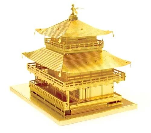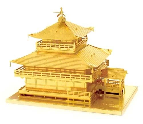 Dit metalen 3d model de Gouden Paviljoen-tempel Kinkaku-ji bestaat uit 3 sheets. Om dit 3d-model te maken heb je geen lijm nodig, wel een tang. Dit model van de tempel meet ongeveer 8,9 x 6 x 6,5 cm.