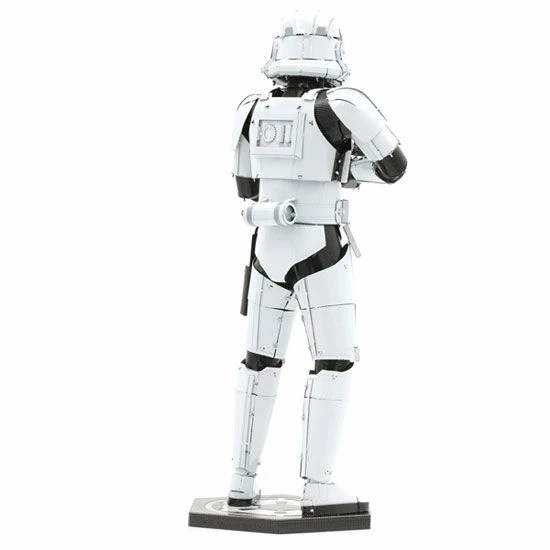 Dit model van de Star Wars Stormtrooper is te assembleren uit 2,5 metalen bladen. Lijm is niet nodig, maar een fijne tang is nuttig.