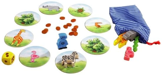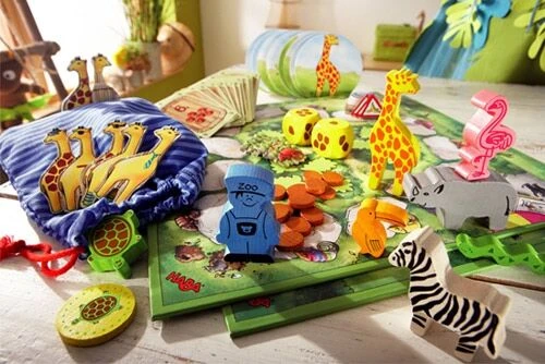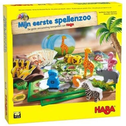 Mijn eerste spellenzoo is een verzameling van 10 leerspellen van het merk HABA. Het zijn afwisselende spellen met als onderwerp de dierentuin. De mix van spellen ondersteunt volgende leergebieden: kleuren en vormen herkennen, tasten, hoeveelheden, tellen, eerste rekensommen, concentratie en geheugen.