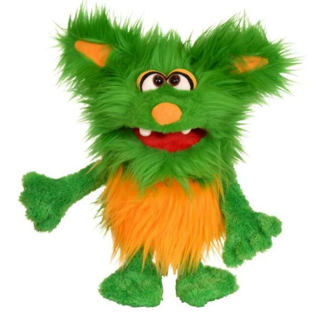 Stop jouw hand in deze handpop van Monster Schotter en beweeg zijn kop en mond. Schotter is een geluksmonster. Hij ontdekt altijd leuke schatten zoals bijvoorbeeld een klavertje vier, een regenboog of een mooie schroef.