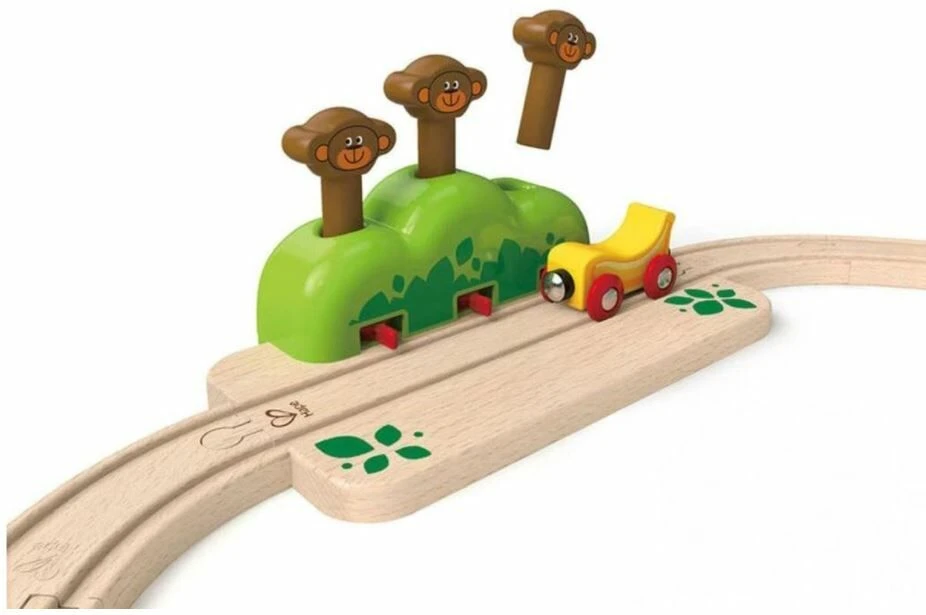 Wat een plezier! Leid je parade van treinen over de spoorlijn, maar let op wanneer de bananentrein de stiekeme apen voorbij zoeft! Ze kunnen op de trein springen om een van de lekkernijen te grijpen.