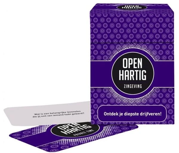 Met behulp van vragen uit verschillende invalshoeken haal jij naar boven waar jouw hart sneller van gaat kloppen. Het spel Openhartig Zingeving bevat vragen zoals bijvoorbeeld: