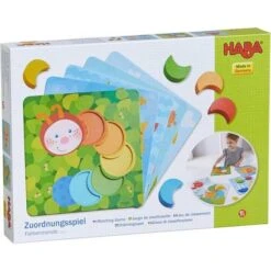 Dit kleurrijk ordeningsspel bevat 5 kaarten en 15 houten manen.