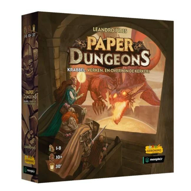 Krabbel, verken en overwin de kerker! Paper Dungeons is een klassiek dungeon crawler spel, waarbij de spelers kerkers verkennen, maar dan in de vorm van een dynamisch Roll & Write avontuur.