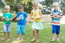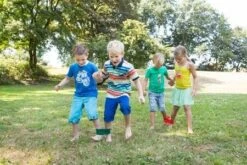 Deze Buitenspeel Party Set is ideaal om kinderen te vermaken tijdens feestjes. Speel zaklopen, het spel met de eieren en lepels, of probeer naar de andere kant te lopen terwijl je met jouw enkel vastgemaakt bent aan iemand anders.
