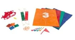 Deze Buitenspeel Party Set is ideaal om kinderen te vermaken tijdens feestjes. Speel zaklopen, het spel met de eieren en lepels, of probeer naar de andere kant te lopen terwijl je met jouw enkel vastgemaakt bent aan iemand anders.