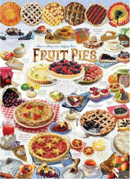 Taarten met fruitige vulling en een boterachtige korst, een kopje koffie of thee en af en toe een mooie spreuk. Hoe kan je nog meer genieten van uw dag? Deze legpuzzel van Cobble Hill heeft het allemaal. Je zal genieten van elk puzzelstuk!