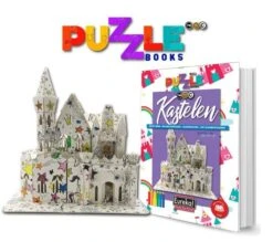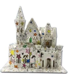 2) Een 3D puzzel waarmee je zelf een droomkasteel ontwerpt. Je kleurt de platen naar keuze in. Daarna zet je de puzzelstukken in elkaar. Om het kasteel in elkaar te zetten, is wat hulp van een volwassene nodig. De moeilijkheidsgraad van deze 3d puzzel is 4 (op een schaal van 1 tot 4).