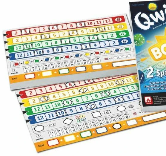 Dit zijn 2 scorebloks met een nieuwe variatie voor het spel Qwixx. Zo blijf je als veelspeler plezier beleven aan het dobbelspelletje Qwixx.