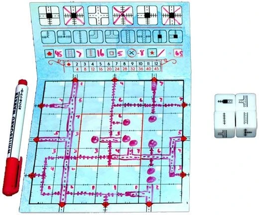Railroad Ink is een competitief puzzelspel. De spelers gooien de dobbelstenen en tekenen routes op hun spelbord. De bedoeling is om uitgangen met elkaar te verbinden door netwerken te maken.