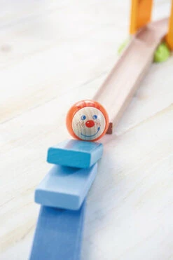 Deze Rollebollen Knikkerbaan van HABA is een geweldige startersset voor de allerkleinsten met 1 startblok, 1 helling, 1 bocht, 1 recht baanstuk, 4 verbindingsstukken, 1 trapsteen, 6 dominostenen, 2 driehoekstenen en 1 knikker Paul.