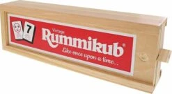 Dit is een Rummikub spel met een retro look. De verpakking en de opzetplankjes van Rummikub Vintage zijn voor 100% gemaakt van natuurlijk hout. De tegels zijn gemaakt van urea kunststof.