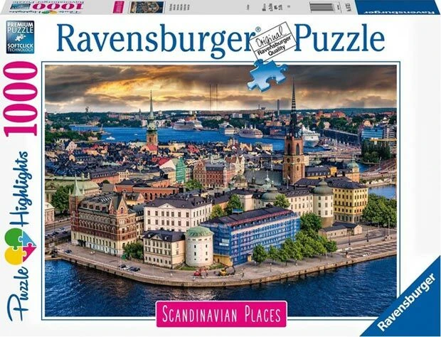 Deze legpuzzel van Ravensburger geeft je een blik op Stockholm, de grootste stad van Zweden. De puzzel bestaat uit 1000 stukjes en heeft een afmeting van 70 x 50 cm.