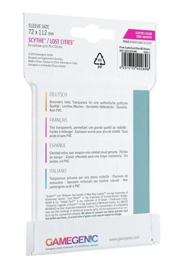 Deze bordspelsleeves (72x112mm) bieden een hoogwaardige bescherming voor bordspelkaarten tot 70x110mm. Het extra heldere polypropyleen materiaal is 100% doorschijnend en helder. De 7 Wonders Sized Game Sleeves zijn o.a. geschikt voor volgende spellen: Scythe, Lost Cities, Between Two Castles of Mad King Ludwig, Trickerion Legends of Illusion en Fabled Fruit.