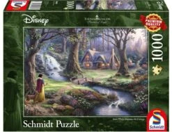 Op de afbeelding van deze legpuzzel zie je een tafereeltje uit het verhaal van Sneeuwwitje. Deze Schmidt puzzel bestaat uit 1000 puzzelstukken.