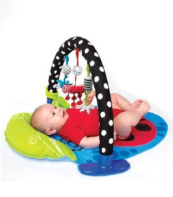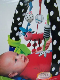 Met deze Sassy speelmat wordt het zicht, het gehoor en de tast bij baby gestimuleerd.
