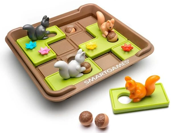 Squirrels Go Nuts is een schuifpuzzel van het merk SmartGames. Deze denkpuzzel bevat 60 verschillende opdrachten, opbouwend gerangschikt van makkelijk naar moeilijk.
