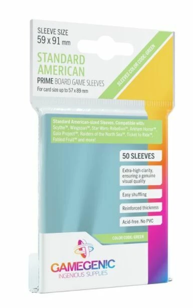 Deze bordspelsleeves (59x91mm) bieden een hoogwaardige bescherming voor bordspelkaarten tot 57×89 mm. Het extra heldere polypropyleen materiaal is 100% doorschijnend en helder. Deze Standard American Card Game Sleeves zijn o.a. geschikt voor Scythe, Wingspan, Star Wars Rebellion, Gaia Project, Arkham Horror, Raiders of the North Sea, Ticket to Ride en Fable Fruit.
