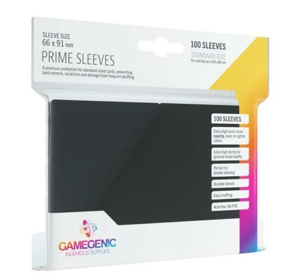 Deze zwarte Prime Sleeves bieden een hoogwaardige bescherming voor standaard formaat kaarten van maximaal 64x89mm. Eén pakje bevat 100 sleeves.